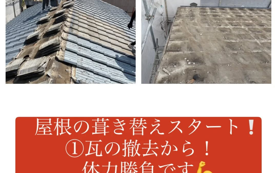 本日は、瓦屋根の葺き替え工事の第1ステップ「既存瓦の撤去作業」からスタート!