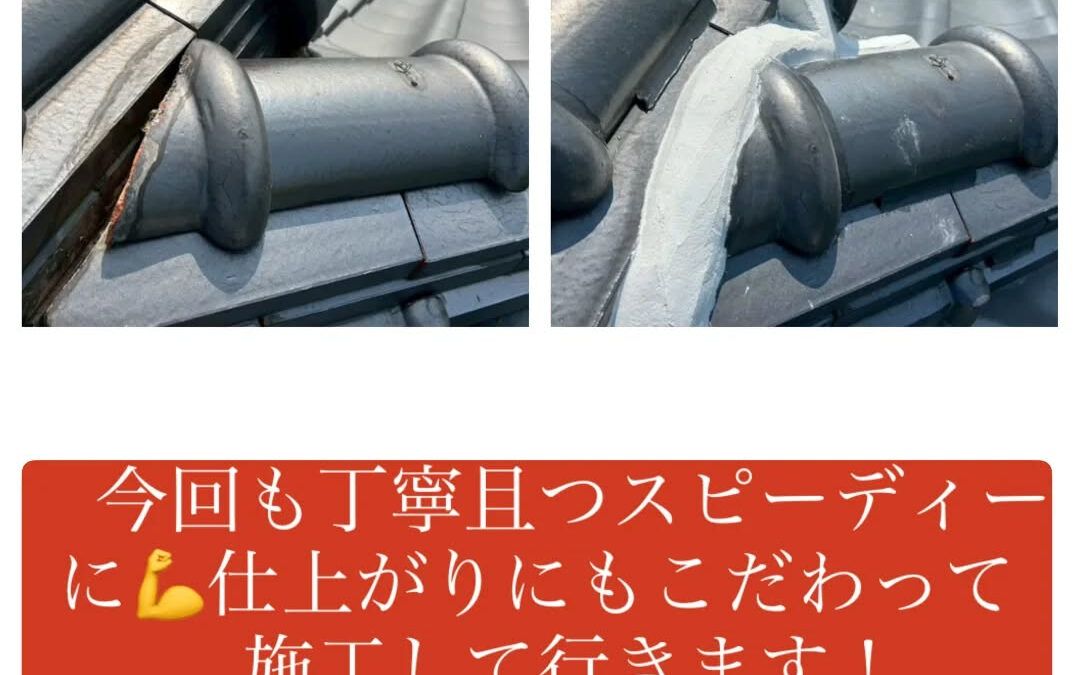 今回は、ズレた棟瓦部分を丁寧に取り外し、内部の状態を確認したうえで、新たに南蛮漆喰でしっかりと補強・固定いたしました✨